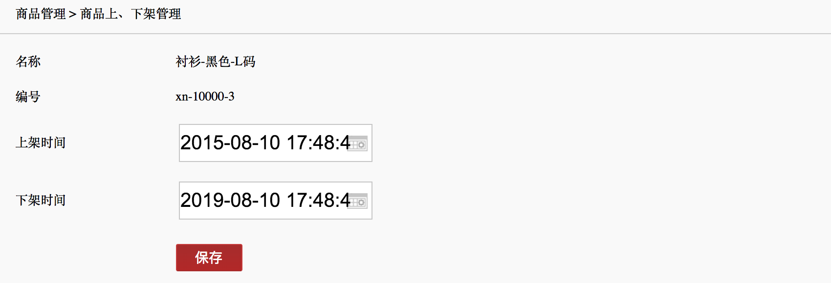 2.点击[上下架调整],然后填写上、下架时间并[保存]。