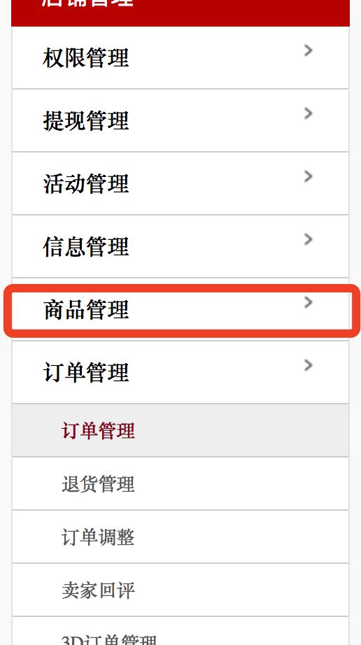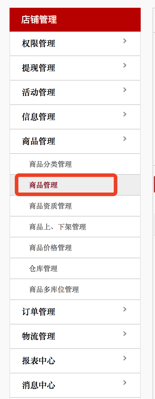 4.点击左侧列表中的[商品管理]