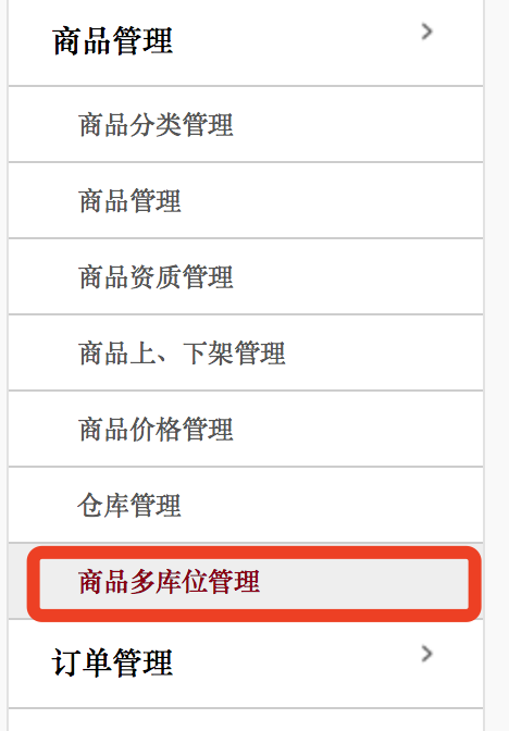 1.点击左侧列表中的[商品库存管理]。