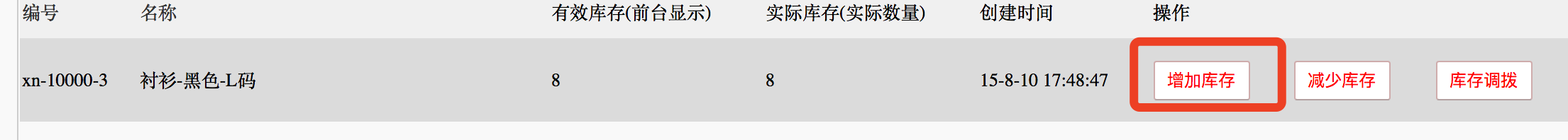 2.点击[增加库存]或[减少库存],修改数量并[保存]。